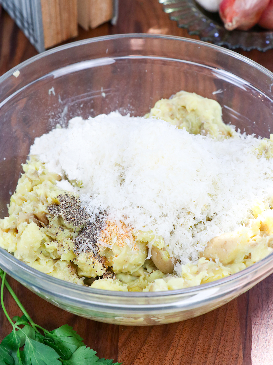 - Use your hands to shape into bite-sized balls. You may need to run your hands under water to keep the potatoes from sticking to you.